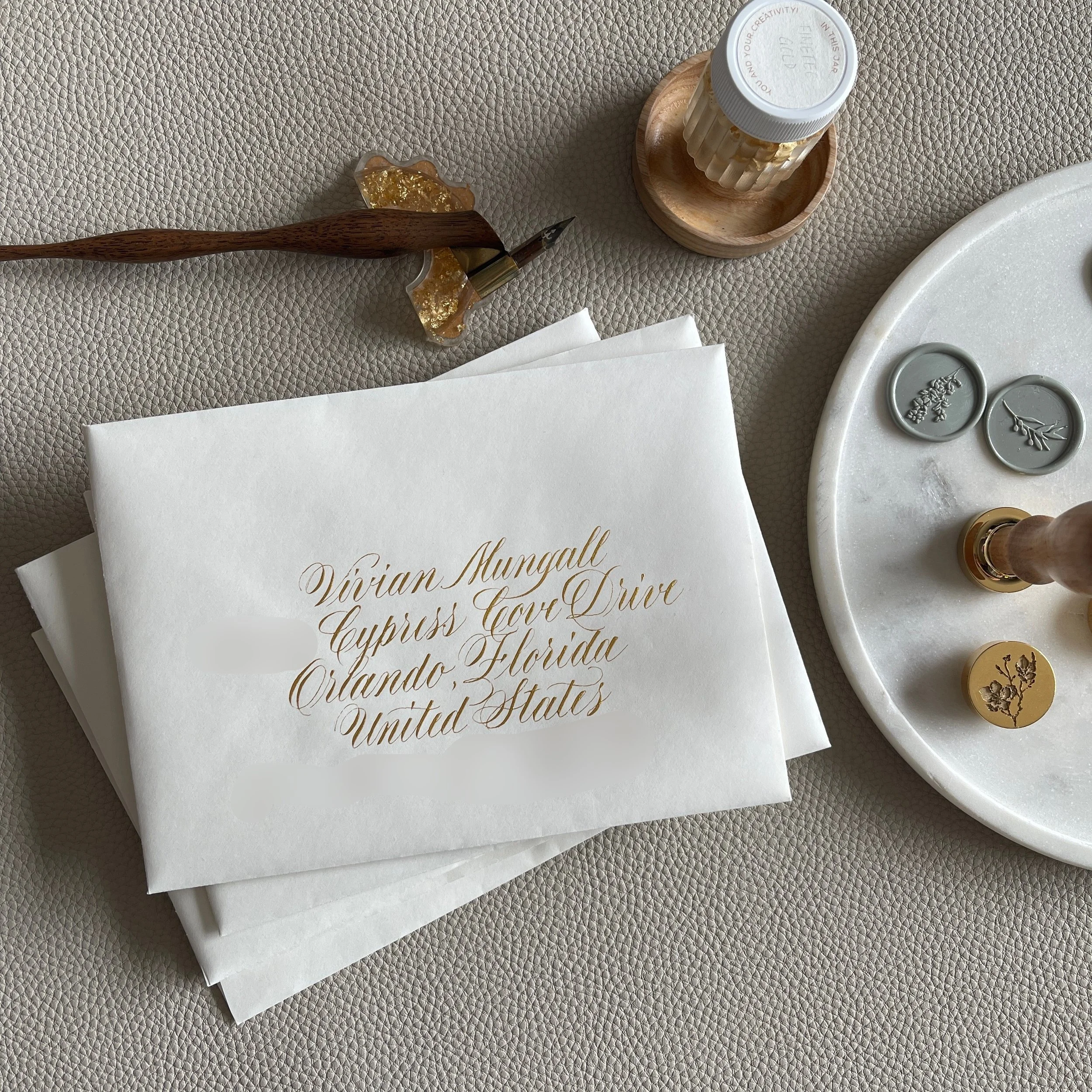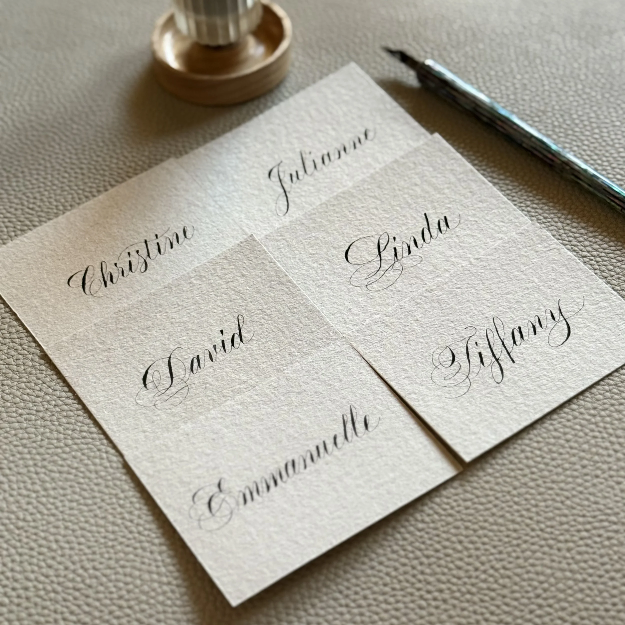 I’m a left-handed calligrapher based in Montréal, Québec. I started practicing calligraphy in 2017 and fell in love with creating timeless, personalized art through ink and engraving. I specialize in custom calligraphy, hand engraving, live brand activations for PR events, conferences, and special occasions. Services are offered both on-site and in-studio.